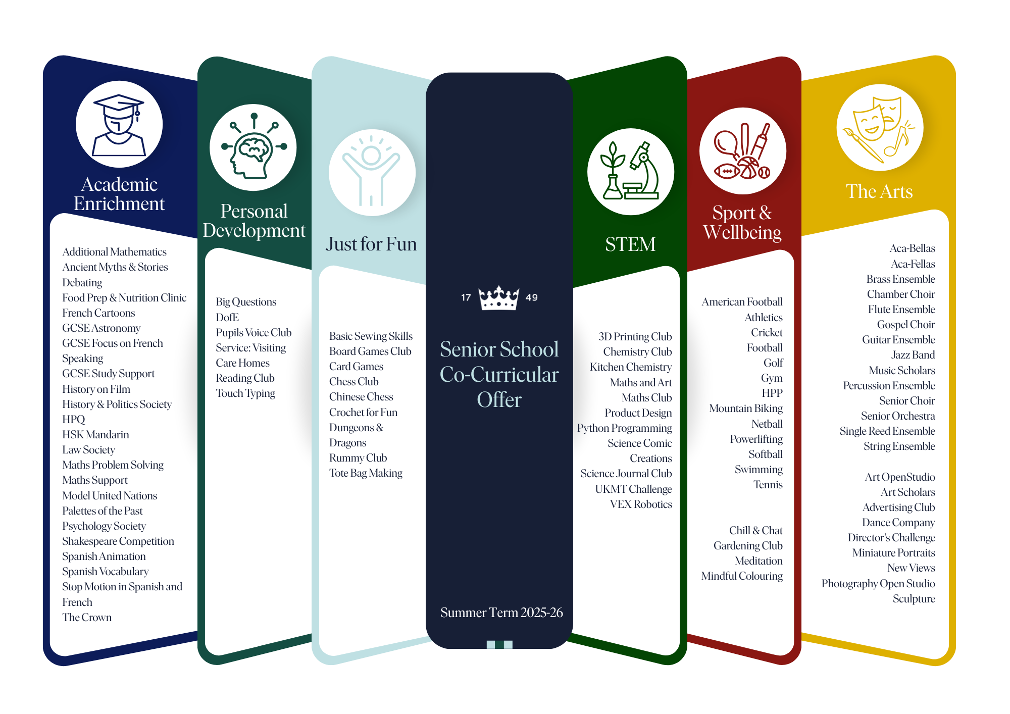 From academic enrichment to quirky student-led clubs and those just for fun, our Sixth Form students are spoilt for choice